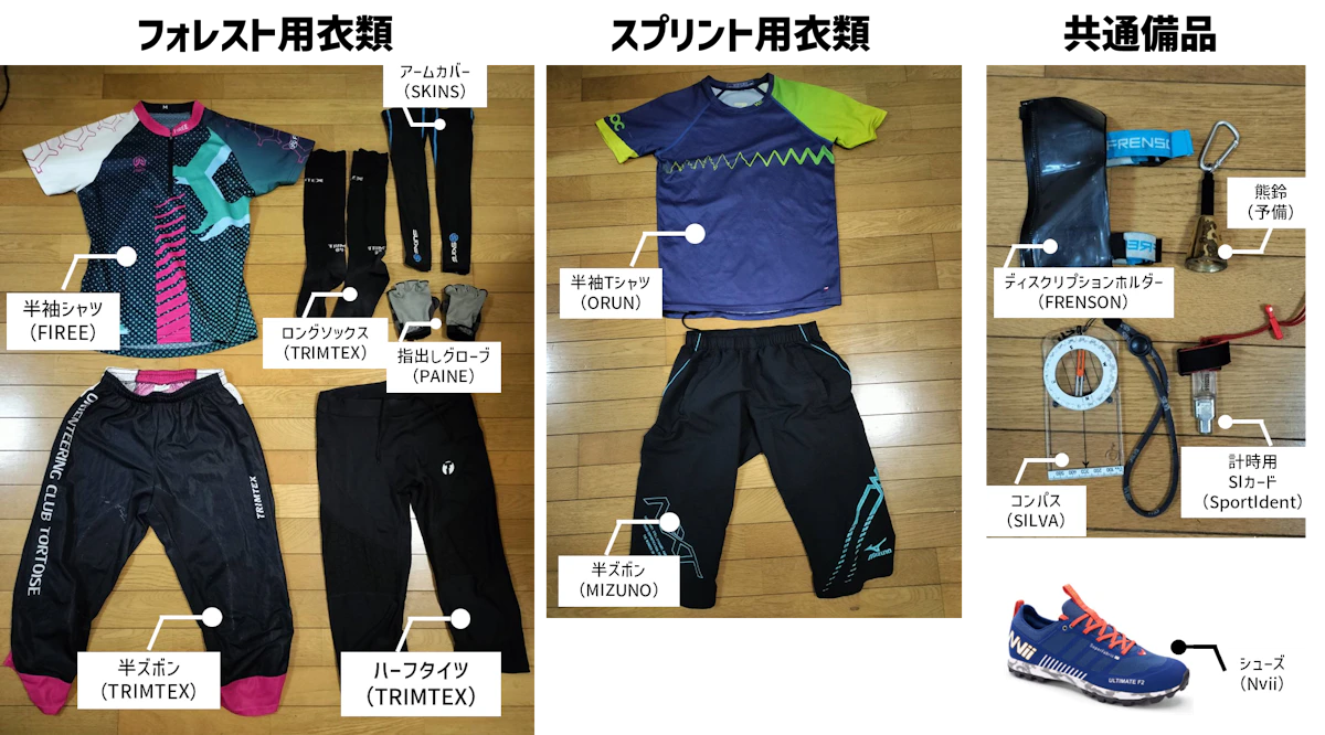 登山では植物によるかぶれや虫刺されを防止するために長袖・長ズボンが推奨されますが、オリエンテーリングでも考え方は似ています。ただし、山の中を走ることがあるので、動きやすさを優先するために半袖・長ズボンのスタイルで競技を行う方もいます。